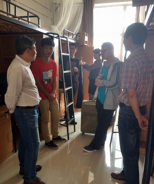 10月7日,DB彩票 在安吉校区迎来了DB彩票 首批报到的新生。为了深入了解新同学的住宿情况,DB彩票 夏建中院长在DB彩票 辅导员及其他老师陪同下对新生宿舍进行了实地走访。