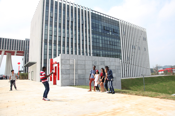 外国留学生来到安吉校区,看到一年多时间一座崭新的大DB彩票 园拔地而起,切身感受到了中国建设、中国精神。“我爱中国,我爱科院。”他们纷纷在新校园内合影留念。
