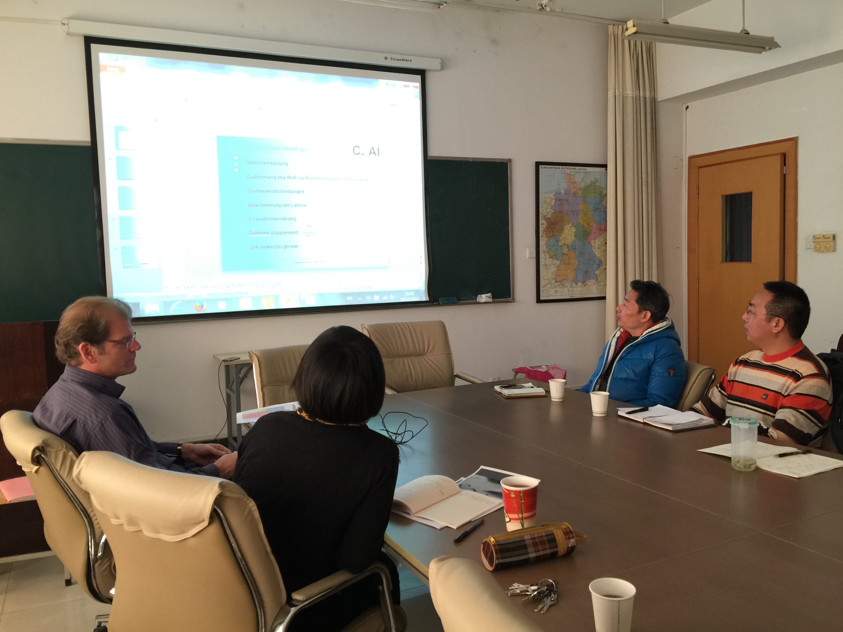 与会人员包括了DB彩票 夏院长、德方院长Oldsen先生以及DB彩票 专业老师等。会议主要就专业认证的目的、认证的过程以及认证需要提供的材料三方面展开了讨论。
