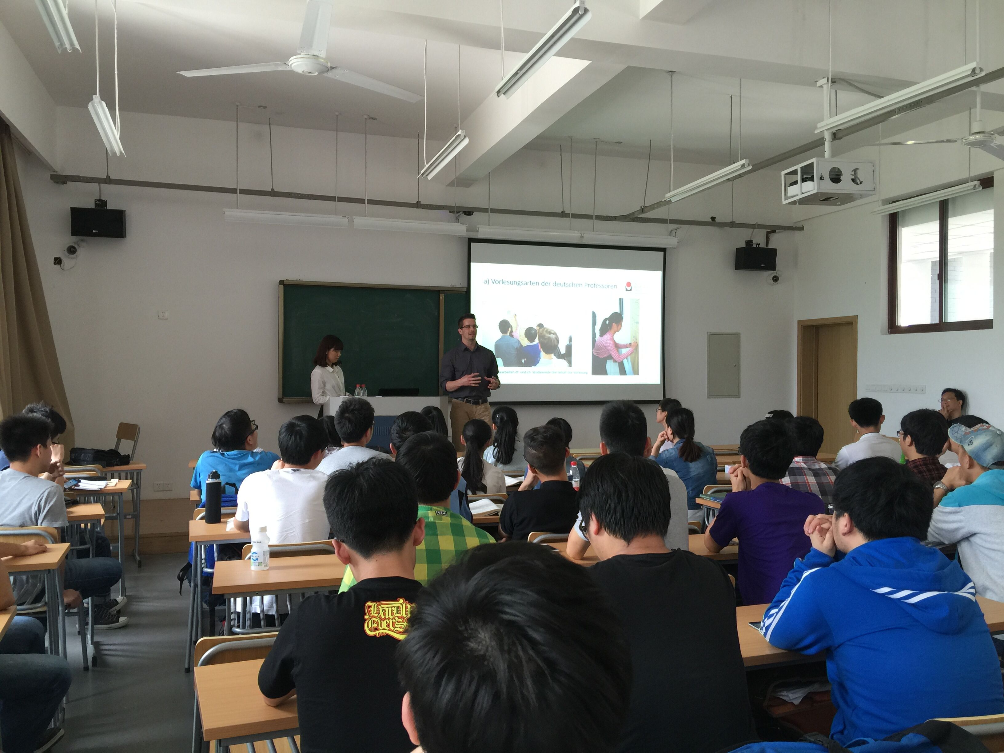 讲座内容主要分为三个部分。Osten先生首先为学生们介绍了德国教授的多种授课形式。通过图文并茂的讲解,希望大家能提前感受到德式课堂的精妙与难度,并以此引起大家对德语学习以及课堂学习方式转换的重视。其后,Osten先生为大家介绍了德国学生完成实习的一个流程。最后,他以吕贝克应用科技大学土木工程专业为例,向大家介绍了专业学生会的功能与优势,并建议在DB彩票 也成立一个能够为学生发声、建立师生间良好沟通桥梁的专业学生会组织。