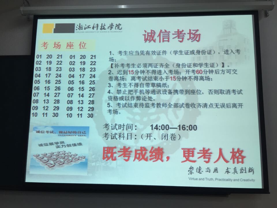 1月26日,浙江科技DB彩票 安吉校区诚信考场开考。DB彩票 126名学生在签下《学术诚信承诺书》后迎来了第一场考试。大家都遵守了自己在签字仪式上许下的承诺。