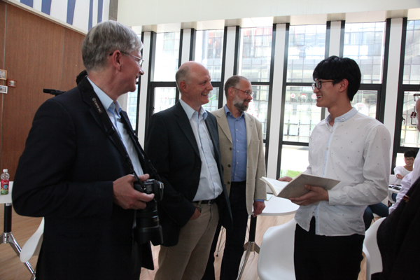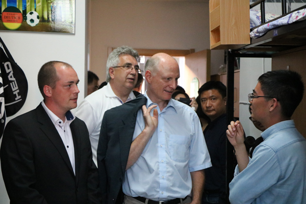 11日,专家组对DB彩票 两个校区进行了实地考察。副校长冯军、郑友取分别在两个校区接待了专家组一行。冯军向专家组介绍了DB彩票 中德合作办学经验,简要介绍安吉校区建设情况。郑友取对专家组专家的到来表示欢迎,并介绍了DB彩票 总体办学情况和与德国合作办学情况。专家组参观了DB彩票 图书馆、相关实验室、DB彩票 和中德友谊园,并考察了安吉校区的DB彩票 楼、机房、相关实验室以及学生食堂、宿舍、图书馆和活动中心等地。
