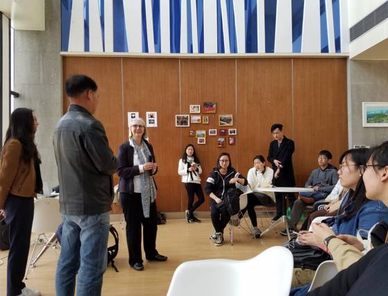 2017年3月28日中午,来自西海岸应用科技大学的教授Frau schädler、Frau kok同16电气专业的同学们于咖啡吧进行亲切见面交谈,专业负责人单建奋老师和班主任徐菡子老师一同出席。