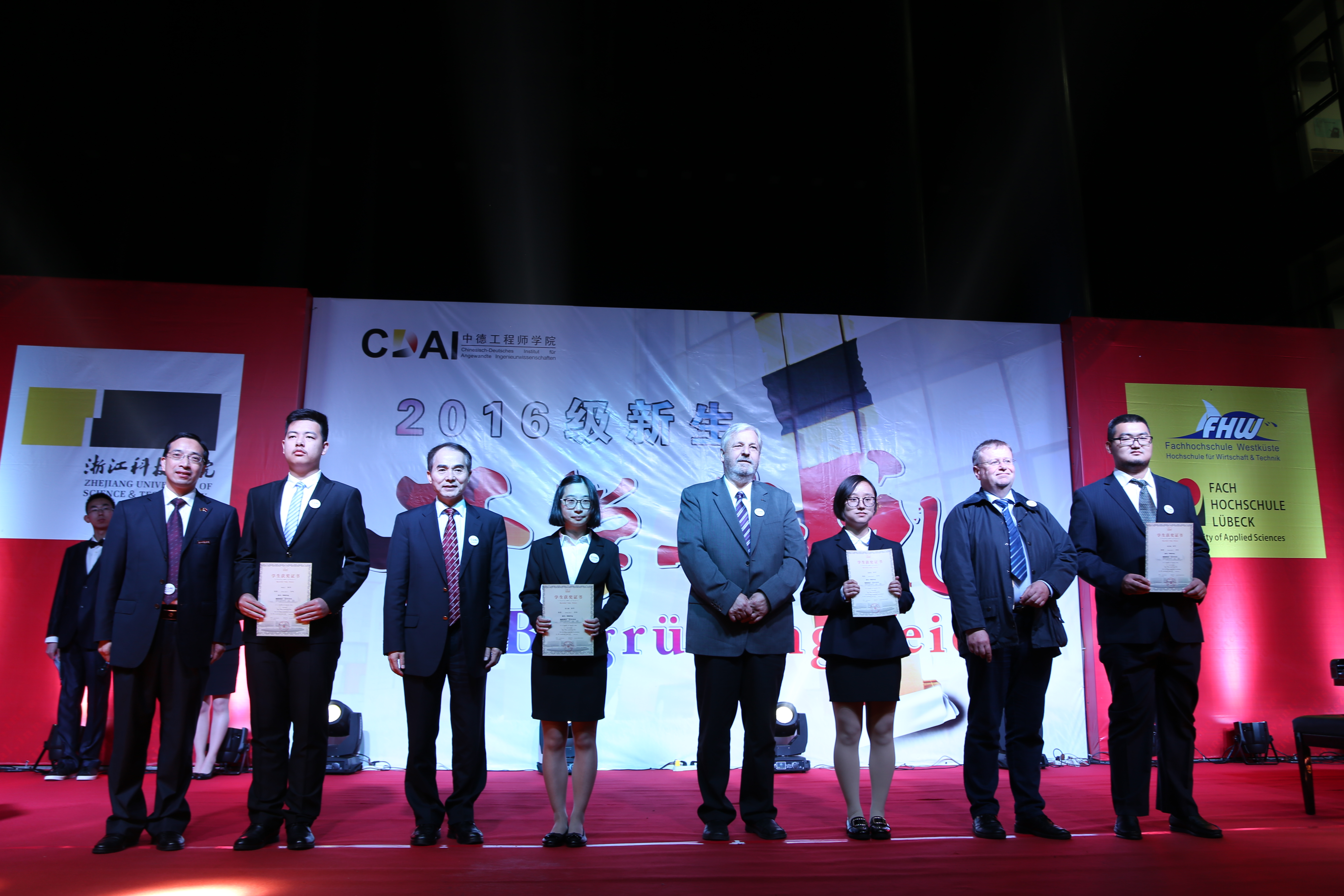 18:30,在精彩的古筝演奏后,DB彩票 院长徐理勤、教DB彩票 长弗郎克·肯普(Frank Kemper)致欢迎辞,开学典礼正式开始。浙江科技DB彩票 校长叶高翔、吕贝克应用科技大学副校长利兹教授和西海岸应用科技大DB彩票 长科尔希教授分别为16级新生致辞,勉励同学们在今后四年中更好的学习,珍惜美好的大学时光。浙江科技DB彩票 副校长冯军宣读新生奖学金获奖名单,出席典礼的中德双方高校领导和教授们为获奖同学颁发证书。老生、新生代表分别上台发言,畅谈理想与感悟。期间还有DB彩票 15、16级学生分别带来的乐器演奏,让人陶醉其中。最后,本次开学典礼在欢声笑语声中圆满结束。