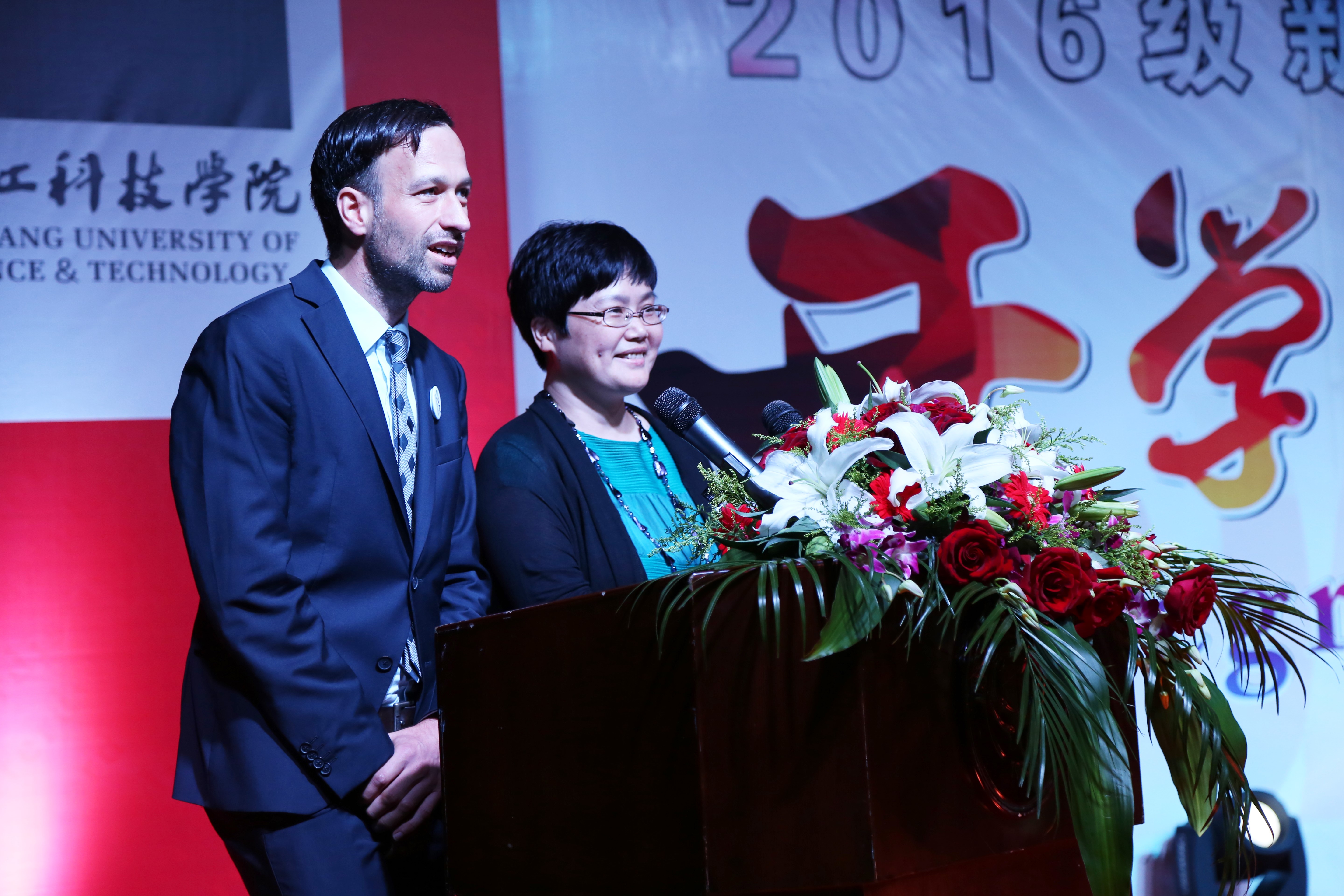 2016年11月6日晚,浙江科技DB彩票 DB彩票 2016级新生开学典礼在浙江科技DB彩票 安吉校区中德楼隆重举行。德国西海岸应用科技大DB彩票 长哈诺·科尔希(Hanno Kirsch)、吕贝克应用科技大学副校长约翰森·利兹(Joachim Litz)、DB彩票 校长叶高翔、副校长冯军、副校长郑友取、校长助理鲁伟权出席。DB彩票 领导、DB彩票 相关职能部门领导、中德双方教师、DB彩票 老生代表和DB彩票 全体16级新生近200人参加此次盛会。