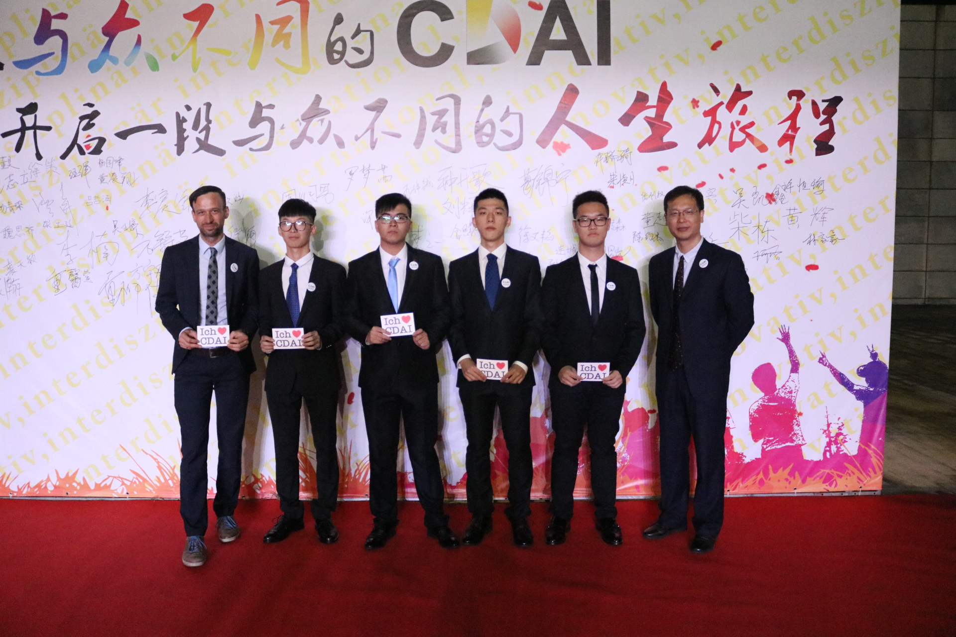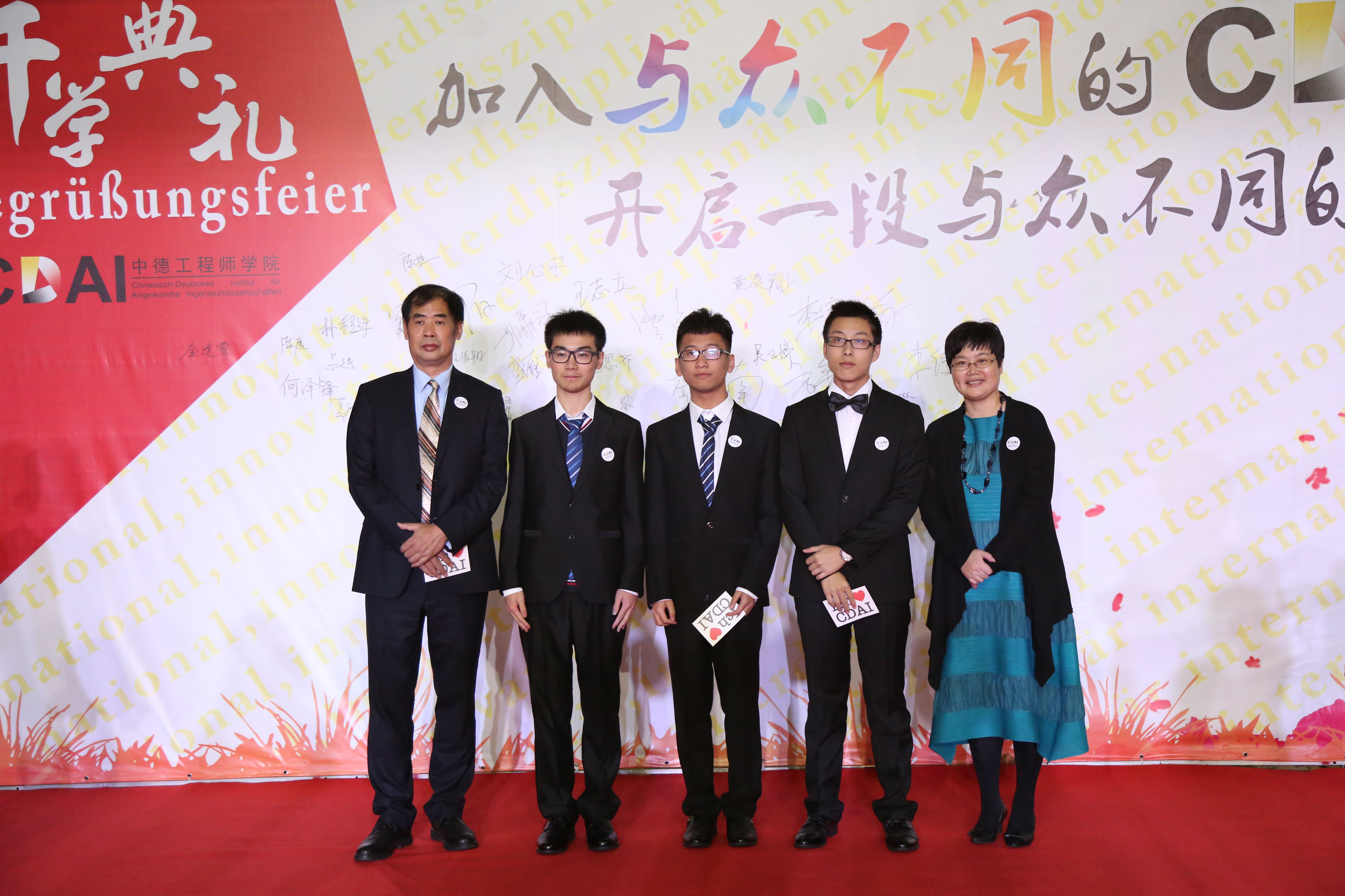 16级新生于晚17:30陆续走上红毯,由DB彩票 院长、教DB彩票 长及专业负责人分别授予院徽和“我爱CDAI”的明信片,新生们还在题有“加入与众不同的CDAI,开启一段与众不同的人生旅程”的签名墙上签字并合影留念。同时,DB彩票 还为新生们准备了内容丰富的各类展览,使新生们加强对DB彩票 中德合作历史、DB彩票 发展历程的了解。DB彩票 机器人团队的展示也引发了新生们浓烈的兴趣。