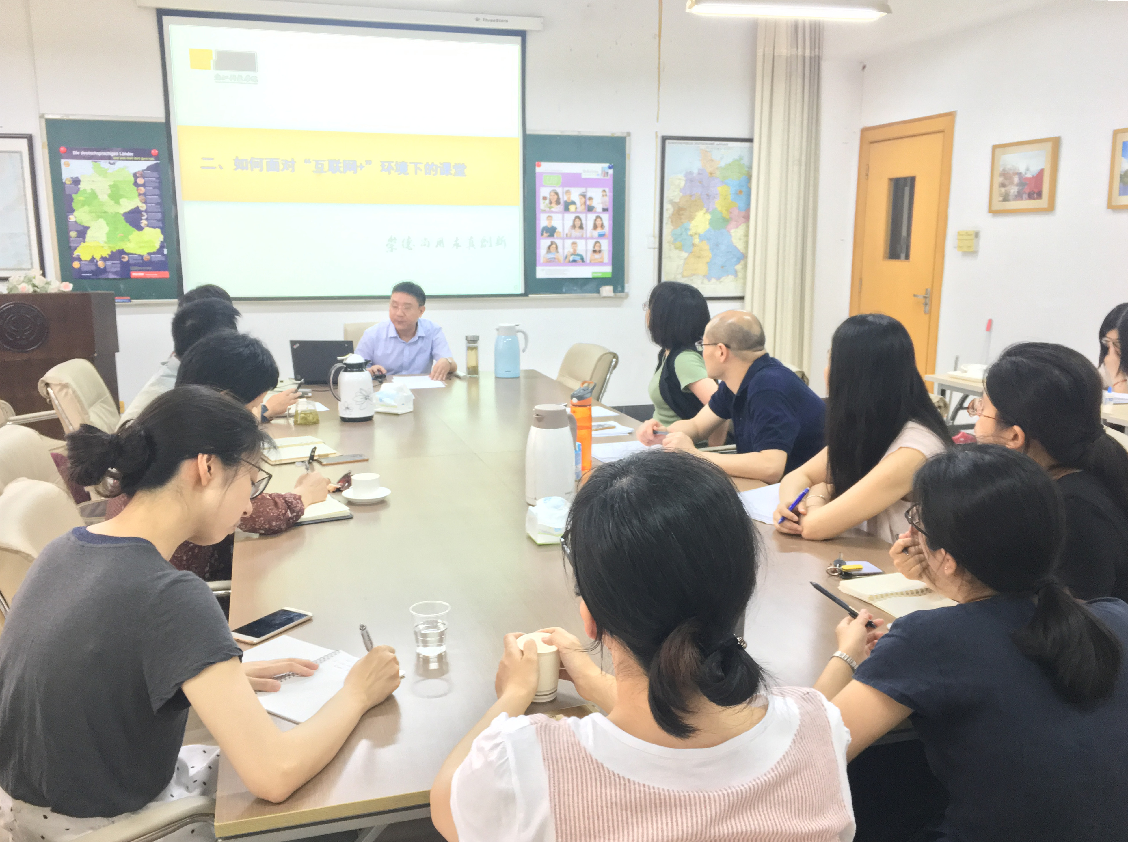 2017年6月2日,作为DB彩票 本学期第二期教学法培训,教育部全国大学化学课程教学指导委员会委员、浙江省高等DB彩票 教学指导委员会委员、浙江科技DB彩票 教学督导组组长张立庆教授受邀做了题为《“互联网+”环境下的课程教学实践》的讲座。讲座围绕“课堂教学手段”和“互联网+背景下的学生”两大内容展开,深入浅出地介绍了各种课堂教学手段,分享了教学经验与体验,尤其是其人文教学思想的构建。在随后的现场提问环节,张教授还与大家展开热烈讨论。DB彩票 13位教师参加了此次培训。