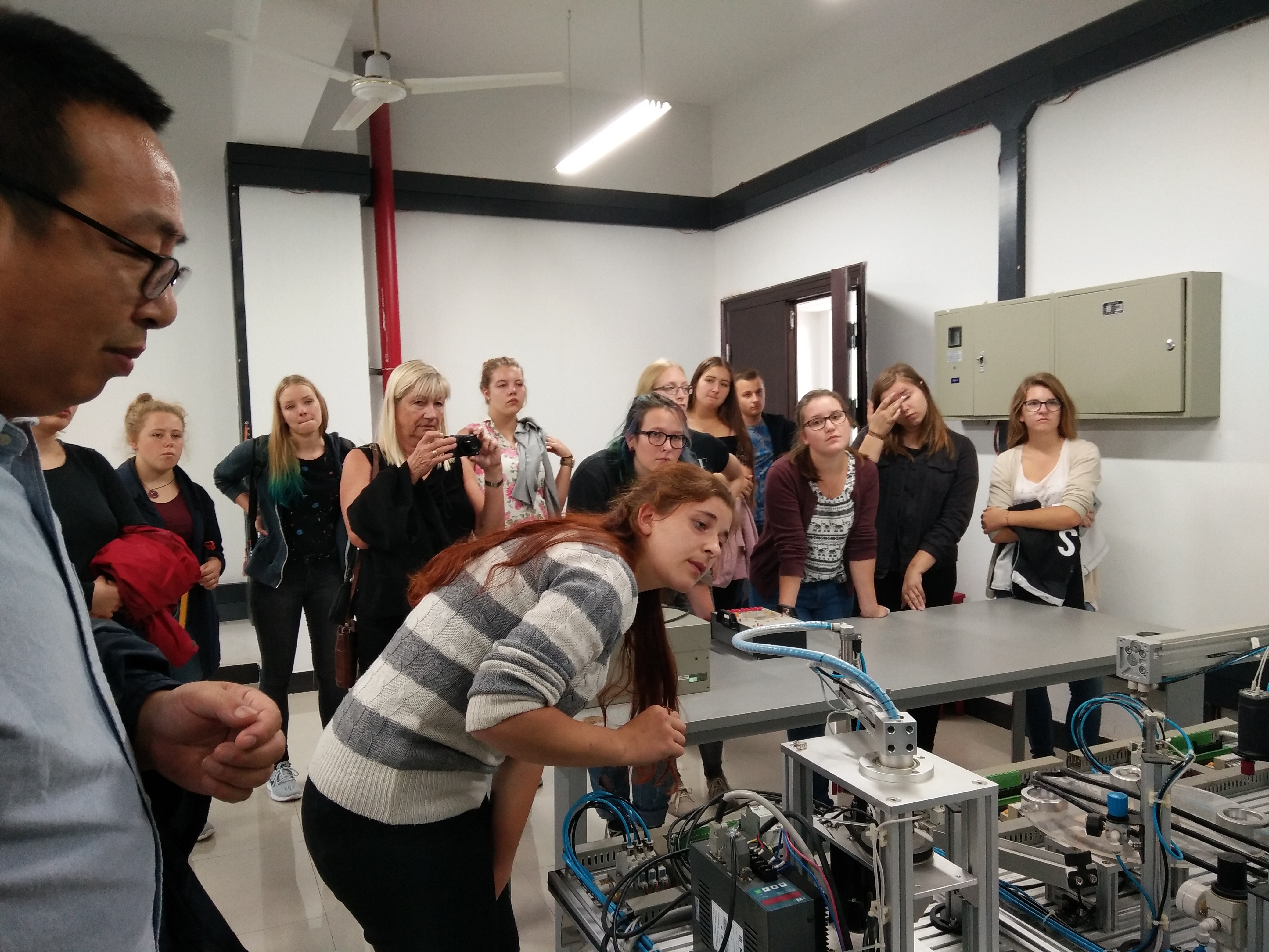10月13日下午,DB彩票 实验室工程师杨志卫带领学生代表团参观电气及其自动化专业的实验室,德国学生对自动化技术产生非常浓厚的兴趣,部分学生甚至主动参与设备演示与讲解。之后,DB彩票 实验室工程师沈潇扬带领学生团参观土木专业的沥青实验室,向大家解释设备的运行方式和原理。最后,由DB彩票 外事秘书吴一婷带领学生代表团参观中德合作馆,向德方代表团展示了DB彩票 中德合作历程和合作成果,参观期间德方教师和学生提问了很多关于DB彩票 专业设置、学生宿舍、实验室规模等问题。本次交流为DB彩票 接收德国学位生打下了良好的基础。