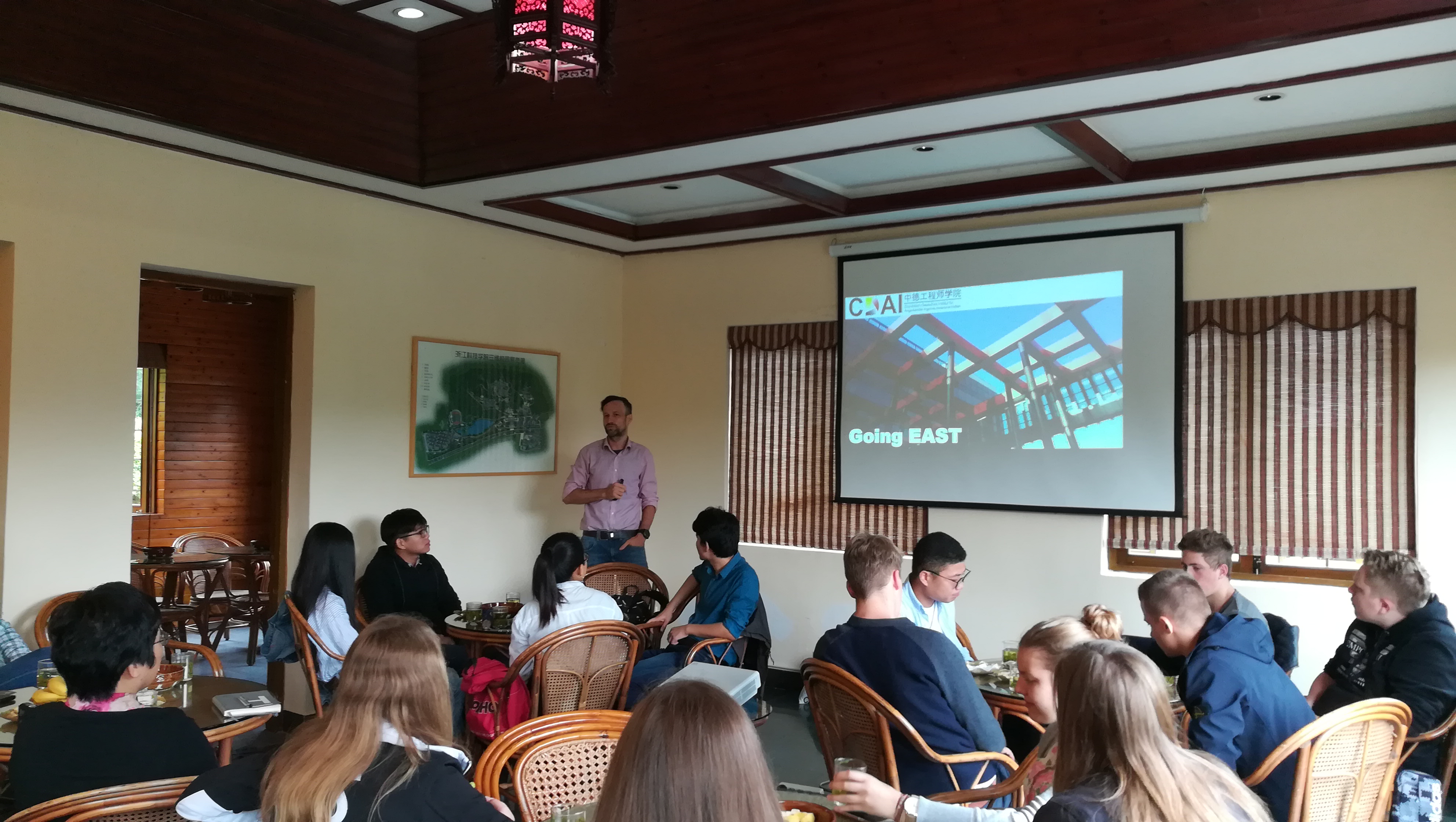 10月13日中午,在中方项目协调员安德鲁斯·哈姆斯(Andreas Harms)、迈克尔·斯达姆麦尔(Michael Stammeier)、部门主管芭芭拉·布克斯(Barbara Bucksch)的带领下,来自德国北部石荷州小城奥伊廷(Eutin)职业中学的学生代表团一行19人来DB彩票 进行参观和访问,DB彩票 院长徐理勤、教DB彩票 长弗兰克·坎伯(Frank Kemper)、党支部书记李成炜及相关教师参加了见面交流会。