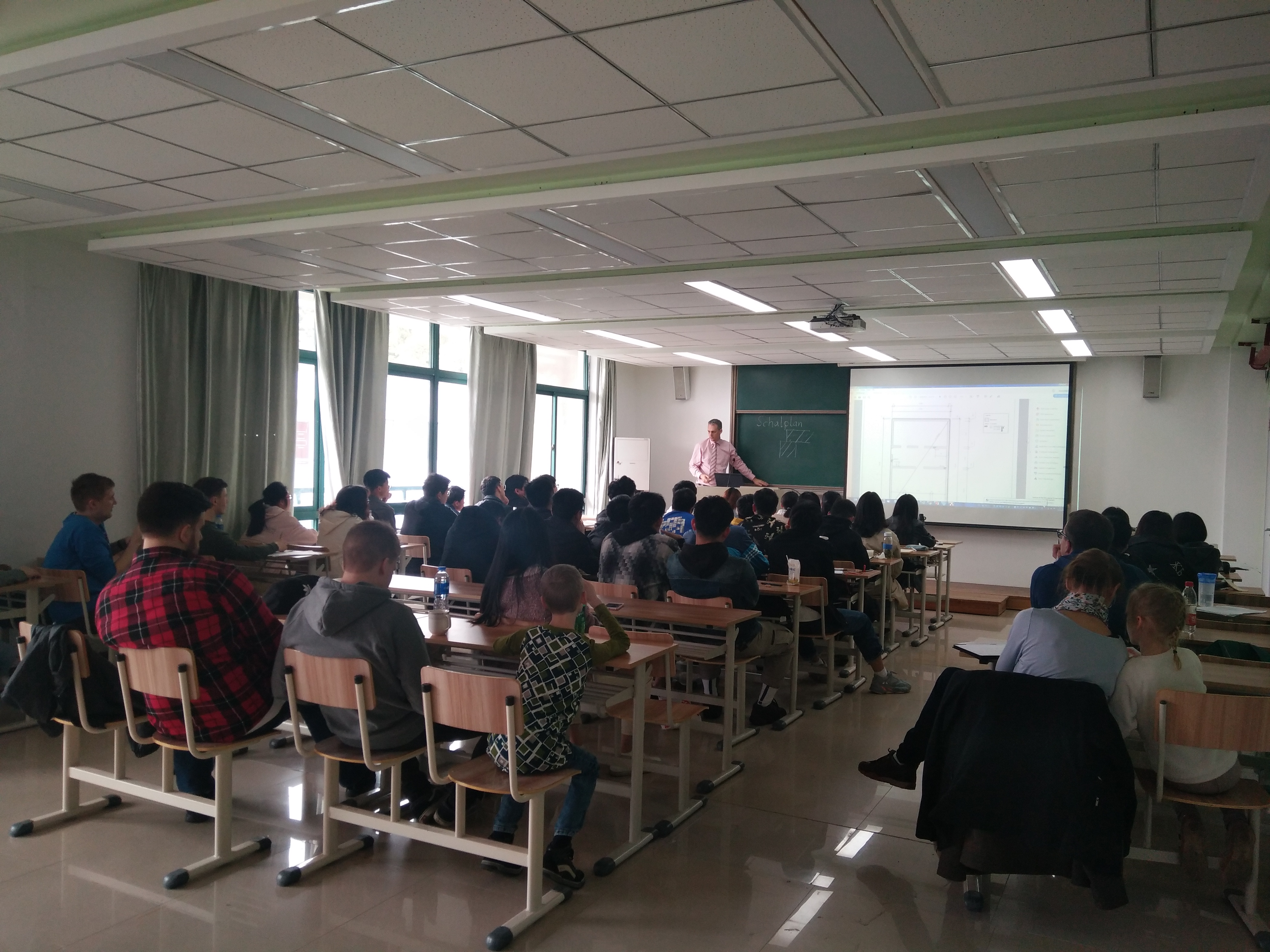 来访期间,德方代表团为DB彩票 土木工程专业16级学生进行承载结构设计的集中辅导课,指导中方学生计算并画出相应的结构图、模板图和配筋图。通过五天的辅导课学习,中方学生进一步了解德国授课的模式和方法,也增进了与德国学生之间的交流。此外,比约恩·埃尔舍教授(Prof. Björn Elsche)、娜迪娜·埃尔舍研究员还为DB彩票 土木工程专业16级学生进行出国选拔考试,共有3名学生成功入选。