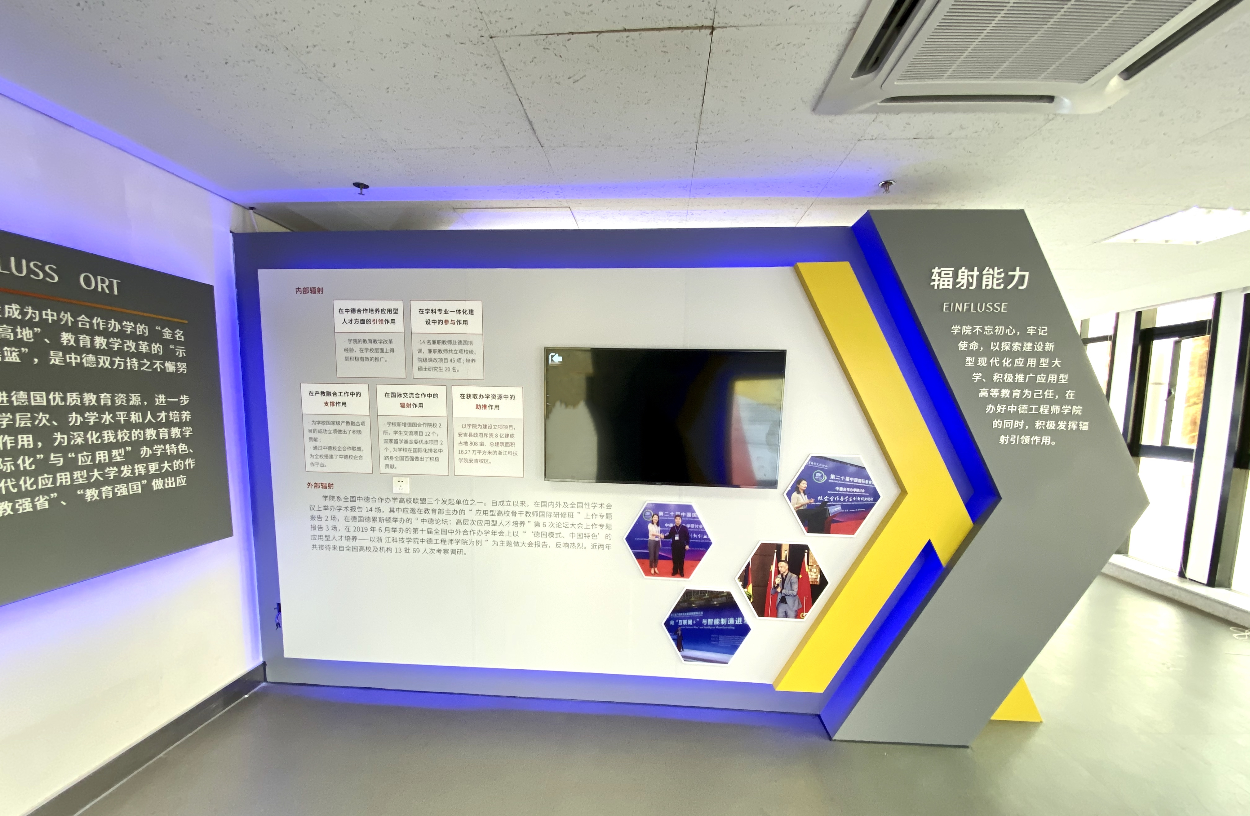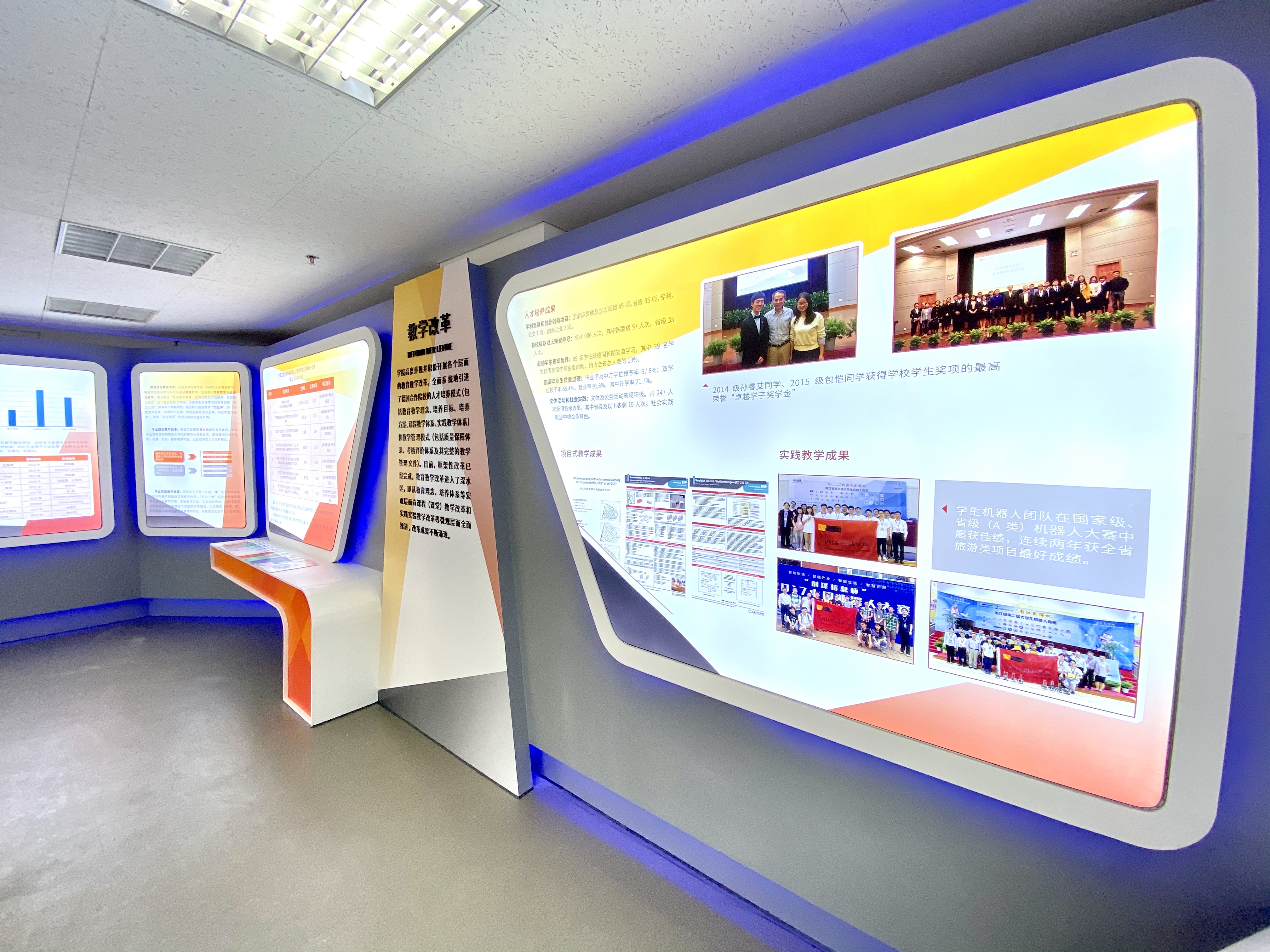 DB彩票 安吉校区为DB彩票 更名大学现场考察点之一。为响应DB彩票 冲刺更名大学工作总体部署,助力更名大学目标顺利实现,DB彩票 总结过去5年的办学历程和成效,专门设立办学成果布展项目,充分展示DB彩票 中德合作的办学经验和相关成果。经过2个多月的努力,项目顺利完工。11月21日,由校资产处组织,监察处、校办、计财处、工会(教代会)代表、DB彩票 等部门派员及供货单位代表,在安吉校区中德楼E座1层/D座1层现场进行项目进行现场验收。验收工作圆满完成。