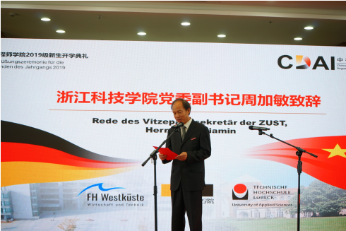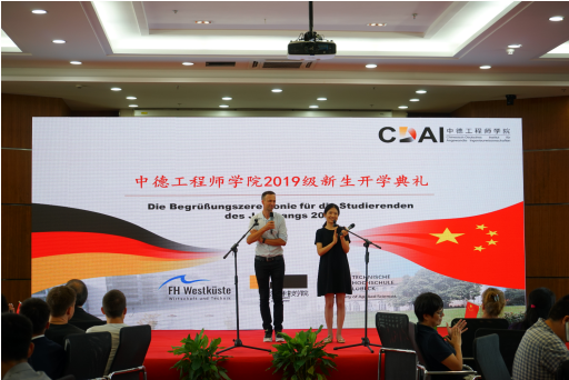 浙江科技DB彩票 DB彩票 于2019年9月9日下午16:30在安吉校区中德楼B4报告厅举办了DB彩票 2019级新生开学典礼。校党委副书记周加敏老师、DB彩票 德国外教、德国交换生等也受邀参加了此次典礼。