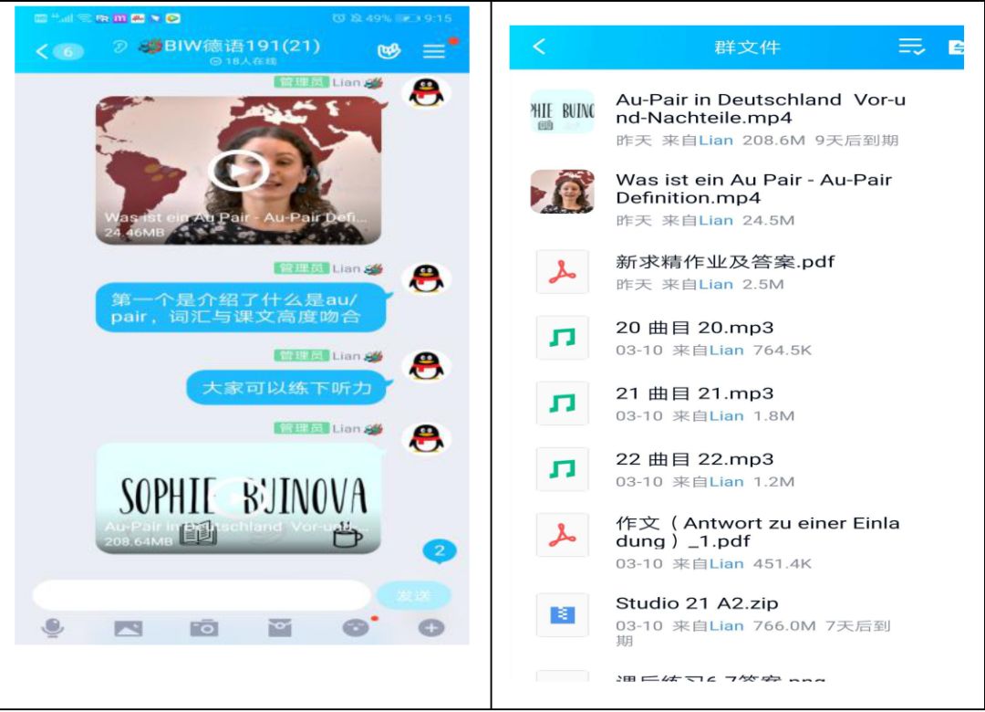 •扩展阅读范围。同时结合每单元的主题,下载外网上关于德语国家国情的视频资源上传至QQ群,对学生的上课内容进行补充,加深其对德语国家的了解。同时利用QQ群实现课下答疑。