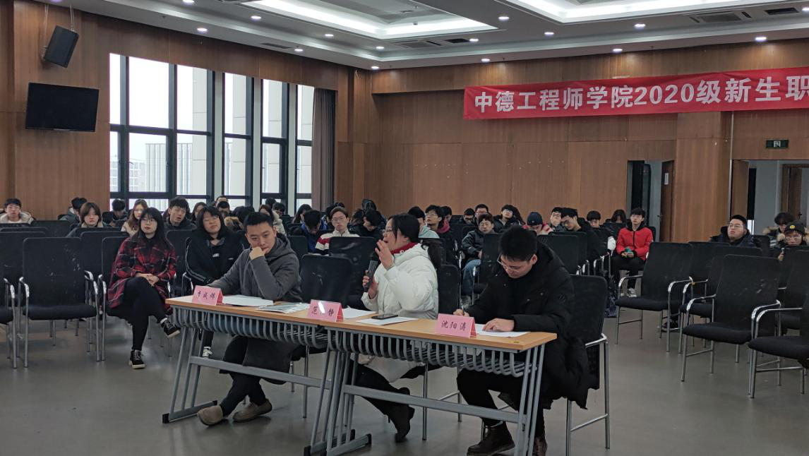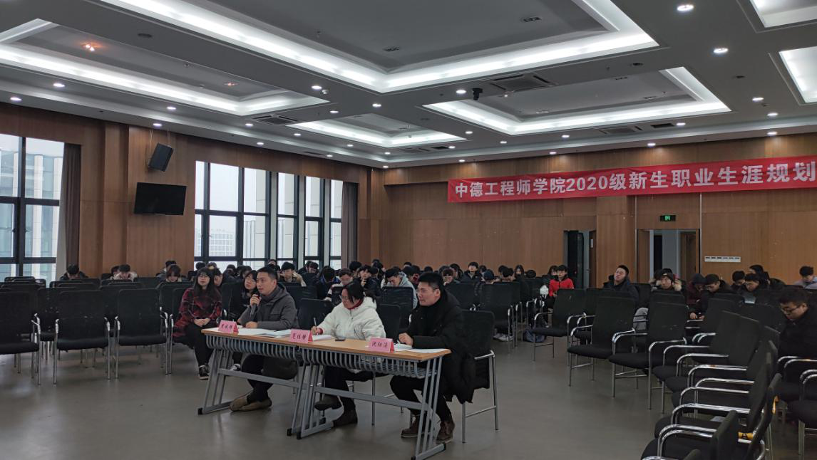 2020年12月18日,DB彩票 2020第二届新生职业生涯规划现场展示及评选活动在安吉校区中德楼B4报告厅召开。DB彩票 副书记范佳静、李成炜老师,招生就业辅导员沈阳涛老师作为评委参加了此次活动。
