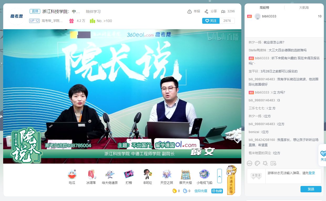 2021312日,DB彩票 与360教育在线高考帮合作开展三位一体招生宣传“院长说”直播活动,DB彩票 副院长薛文做了题为“不出国门,留学德国”的人才培养方案介绍,与主持人互动并详细解答了考生比较关注的关于DB彩票 的一些问题,吸引了众多考生家长驻足观看。