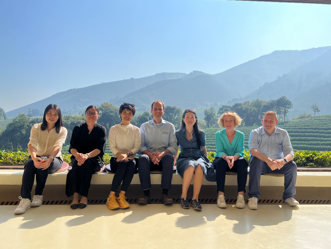 2023年11月5日,DB彩票 院长薛文、直属党支部书记范佳静、土木专业教师金韶霞陪同来自德国吕贝克应用科技大学DB彩票 德国办公室主任Nicola Graessner女士、土木工程专业德方负责人Jan Lüking教授、彭岚女士、德国茨维考应用科技大学工业工程专业Dirk Förster-Trallo教授等合作方同事,共赴安吉溪龙黄杜金叶子景区体验安吉白茶文化。