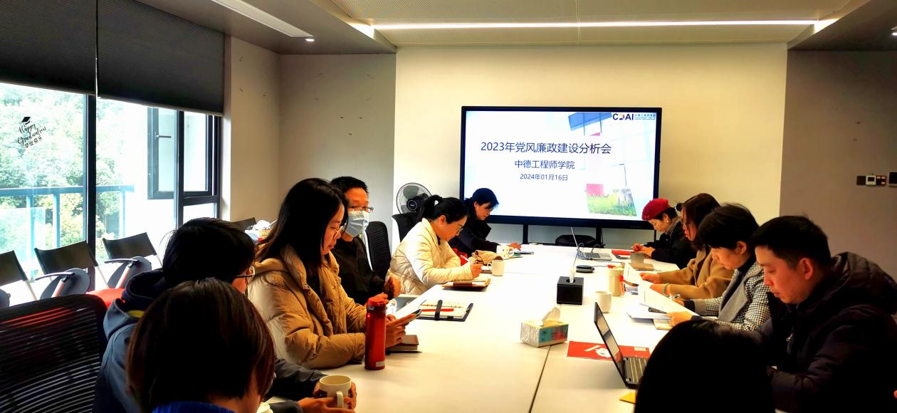 DB彩票 于2024年1月6日召开2023年度党风廉政建设分析会。DB彩票 党政领导班子成员及各内设机构负责人参会,校纪检监察室副主任叶豪芳出席会议。