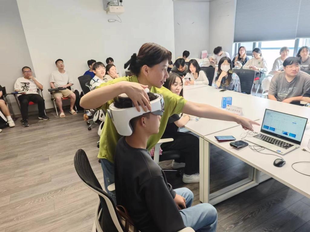 陈宸先生从专业的角度为同学们讲解了脑疾病与脑电波之间的关系,解释了脑电检查的重要性和改进脑电检测方法的必要性并指明了物联网是脑科学发展的一个重要方向。陈宸先生还为同学们带来了其公司开发的脑电图机产品,并邀请同学亲身体验。在两位主讲人的帮助下,四位同学先后进行了脑电检查,并得到了AI分析得出的检查报告。