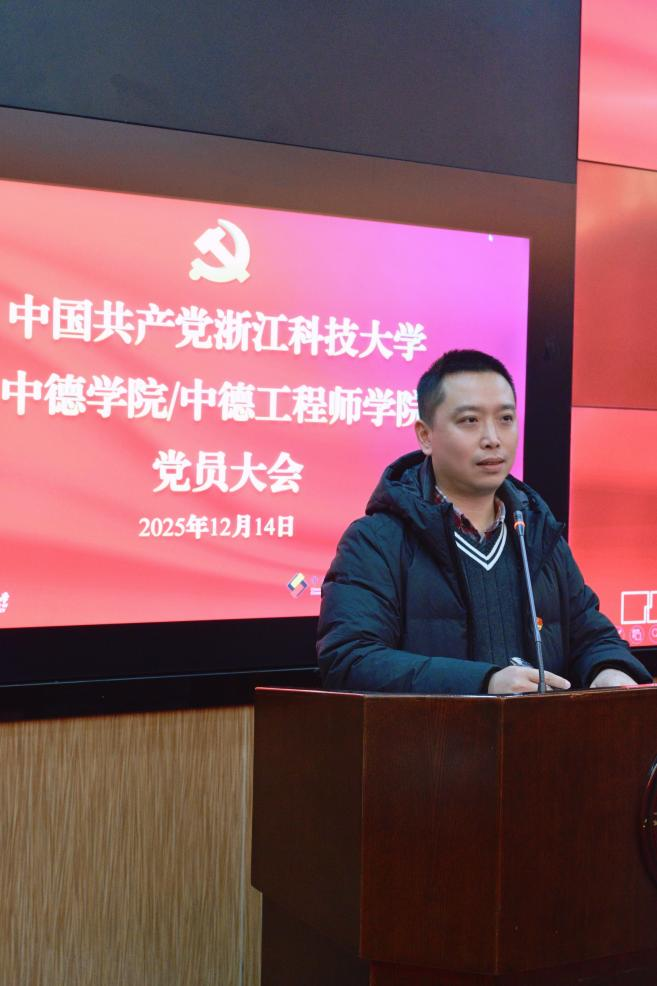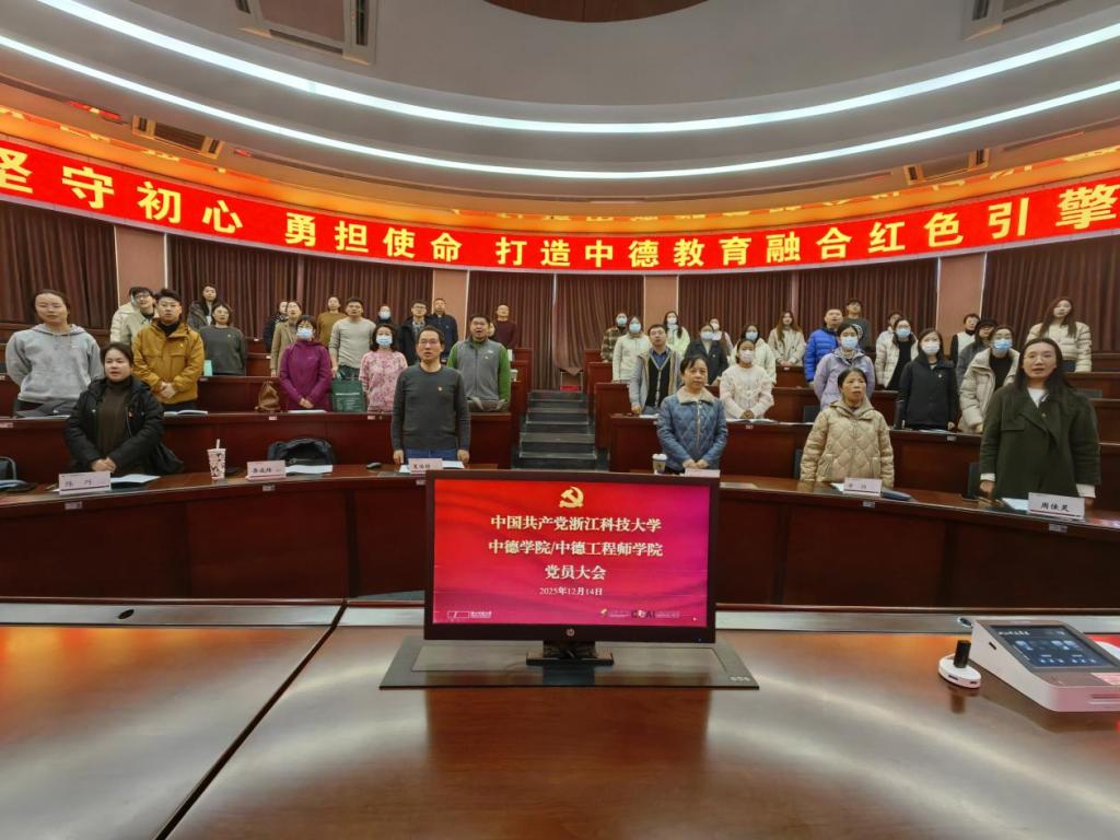 20251214,中国共产党DB彩票 中德DB彩票 /DB彩票 党员大会在庄重而热烈的氛围中隆重召开。DB彩票 全体正式党员参加会议,校纪检监察室周佳灵同志到会监督指导。大会由DB彩票 党委副书记李成炜主持。