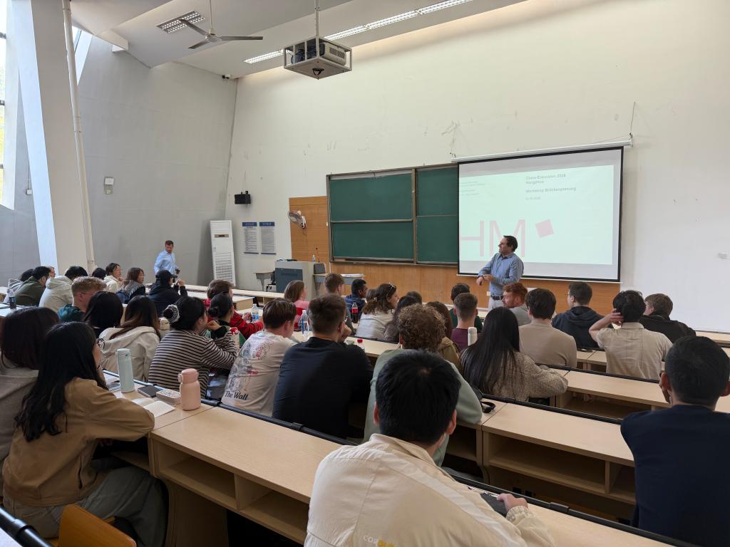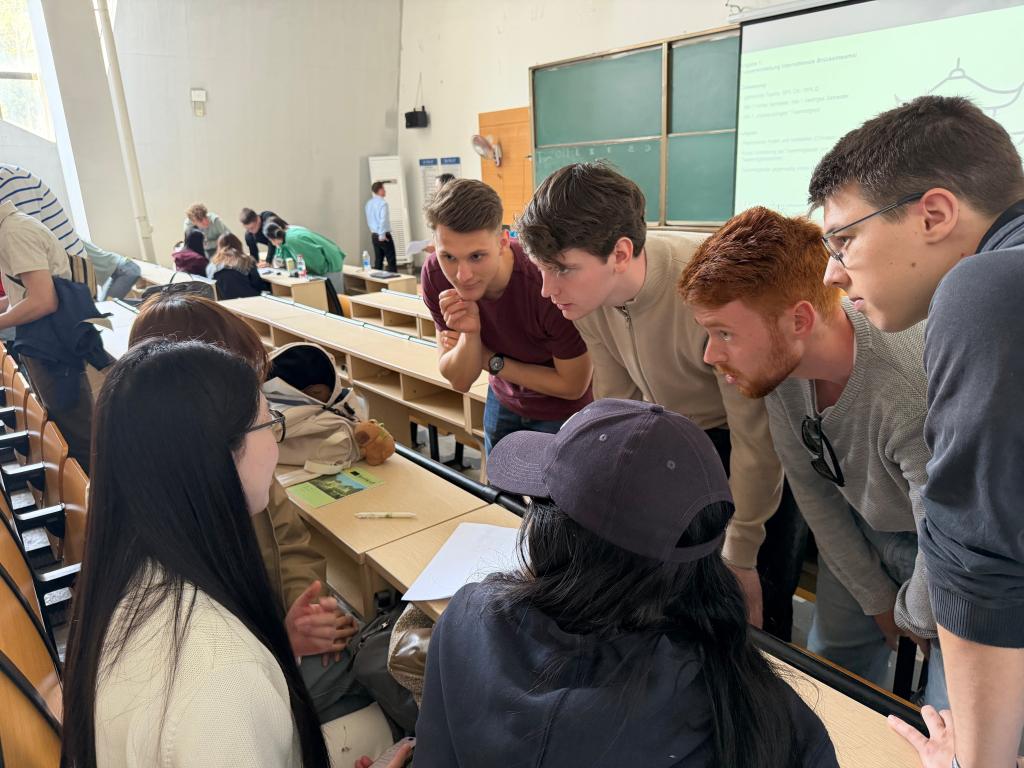 在轻松活跃的氛围中,中德学子混合组队,围绕桥梁设计的力学原理与美学构造展开了热烈讨论。Jungwirth教授深入浅出的讲解,不仅让同学们对桥梁结构有了更深刻的理解,更在思想的碰撞中拉近了中德师生的距离,为后续的实地考察奠定了坚实的理论基础。