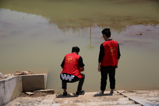 4.16下午一点,虽然烈阳高温,但是同学们热情高涨。同学们先集合学习五水共治的相关知识和背景,之后便开始争分多秒地组队出发啦。