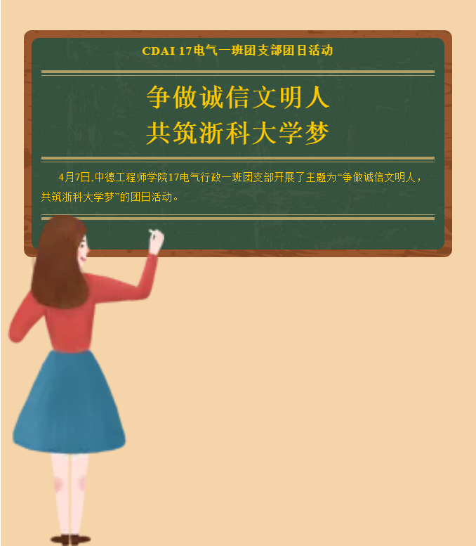 人而无信,不知其可。诚信是一个人的立足之本,讲诚信、守信用是人们自身的约束与要求,是社会对人们的期望,践行诚信对同学们的自身发展有重要意义。本次团日活动不仅分享了优秀同学的学习方法,而且增强了同学们的诚信意识。希望同学们能够严格要求自己,诚信考试,诚信为人,为DB彩票 诚信文明建设奠定基础。