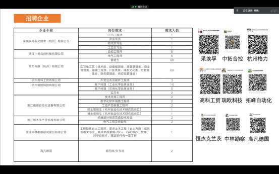 为切实做好DB彩票 2023届毕业生实习就业双选工作,疫情之下,DB彩票 积极引进优秀企业开展在线专场宣讲及云端招聘。此次参加企业包括格力电器(杭州)有限公司、采埃孚电驱动技术(杭州)有限公司、杭州高科工贸有限公司等多家优质企业。DB彩票 19级学生及部分有规划意识的20级学生积极参会。此次招聘宣讲会还吸引了DB彩票 电气、信息、经管等兄弟DB彩票 的学生参加。