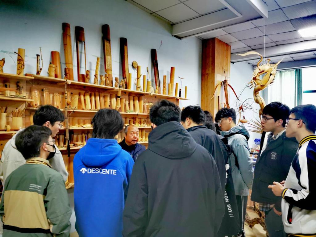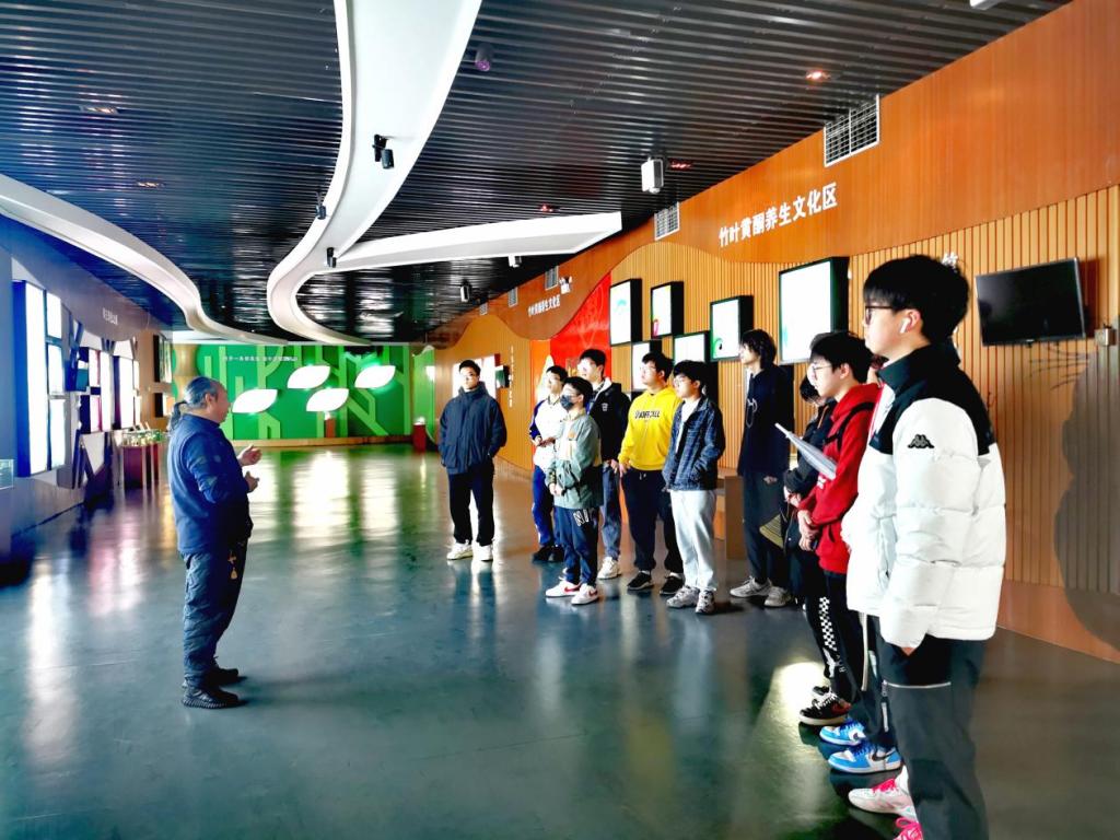陈老师带领同学们一路参观了实验室和展览中心。在展览中心,同学们对圣氏生物的发展历程有了基本了解,观看了竹子在工业、饮食和日常生活的各项应用,亲眼见识了围绕竹叶黄酮素开发的相关终端产品,并品尝到圣氏生物的明星产品“个个健”和“小红九”竹饮料。竹工坊中,陈老师结合自身丰富的实践经验向同学们介绍了竹子的类型、原材料应用和背后的故事,带领大家体验了竹子的打磨和切割工艺。随后同学们分成小组感受竹风铃制作的乐趣,在意犹未尽的氛围中结束了行程。
