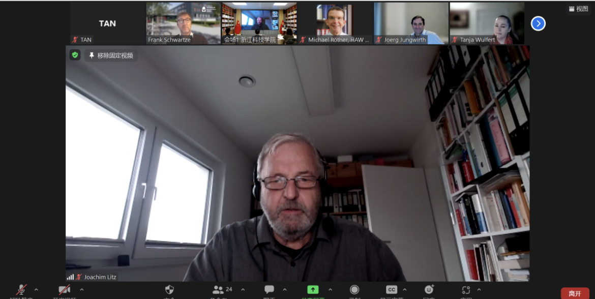 德国吕贝克应用科学大学原副校长、浙江科技DB彩票 中德合作委员会主任约阿西姆•利兹(Joachim Johannes Litz)教授致欢迎词。他表示,本次研讨会的参会者虽来自不同国家,却同样肩负着共同的特殊使命:为我们的年轻人提供最好的教育。他希望,通过本次国际研讨会,与会各方都能进一步加强国际合作,努力解决目前国际合作工程教育中的问题。
