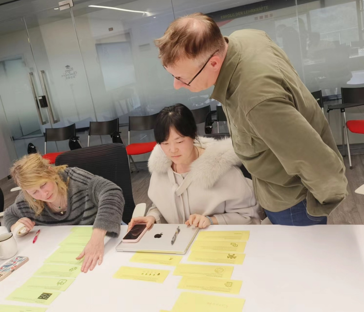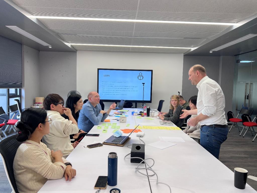 2023年11月23日下午,DB彩票 德语语言中心学术主管Sven Hänke博士为中心全体德语老师举办了主题为“如何使基于教材的德语课更加生动有趣”的沙龙。Hänke博士通过介绍“基于教材的德语课”的概念及要素,引发德语老师对“有趣的德语课的要素构成”的思考。活动中,参与老师以小组为单位对如何更好地将一些合适的交互型练习运用到课堂中进行了热烈研讨。
