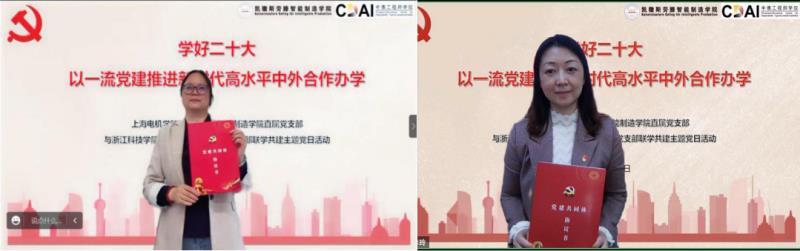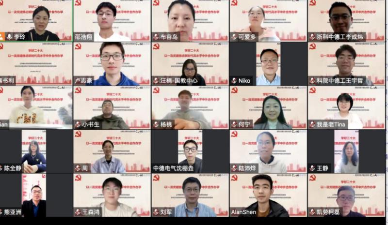 会上,双方举行了“党建共同体”协议书的线上签约仪式。根据协议,双方将在理论学习、组织建设、活动开展等方面进一步深入合作,实现组织共建、发展共促、资源共享。随后,中德工程师范佳静书记与凯撒斯劳滕智能制造DB彩票 何宁书记以党的二十大精神为指导,分别围绕“以铸魂育人为使命、持续提升育人能力”和“构建新时代高质量中外合作办学党建工作体系”开展二十大精神主题领学。双方党员教师还就党建与中心工作相结合、学生党员发展、海外学生思想引领等方面展开交流。