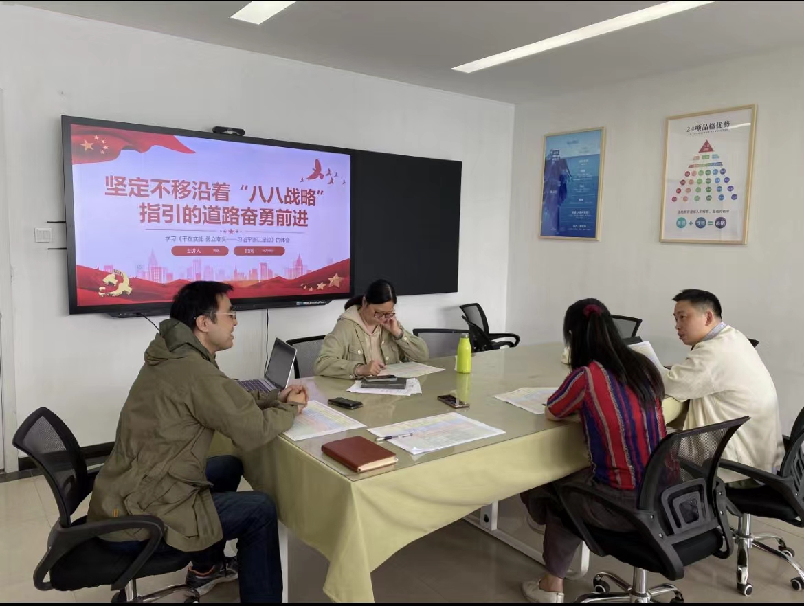 5月8日,DB彩票 直属党支部召开理论中心组会议,就“坚定不移沿着‘八八战略’指引的道路奋勇前行”开展集中学习。会议由直属党支部副书记周扬主讲。