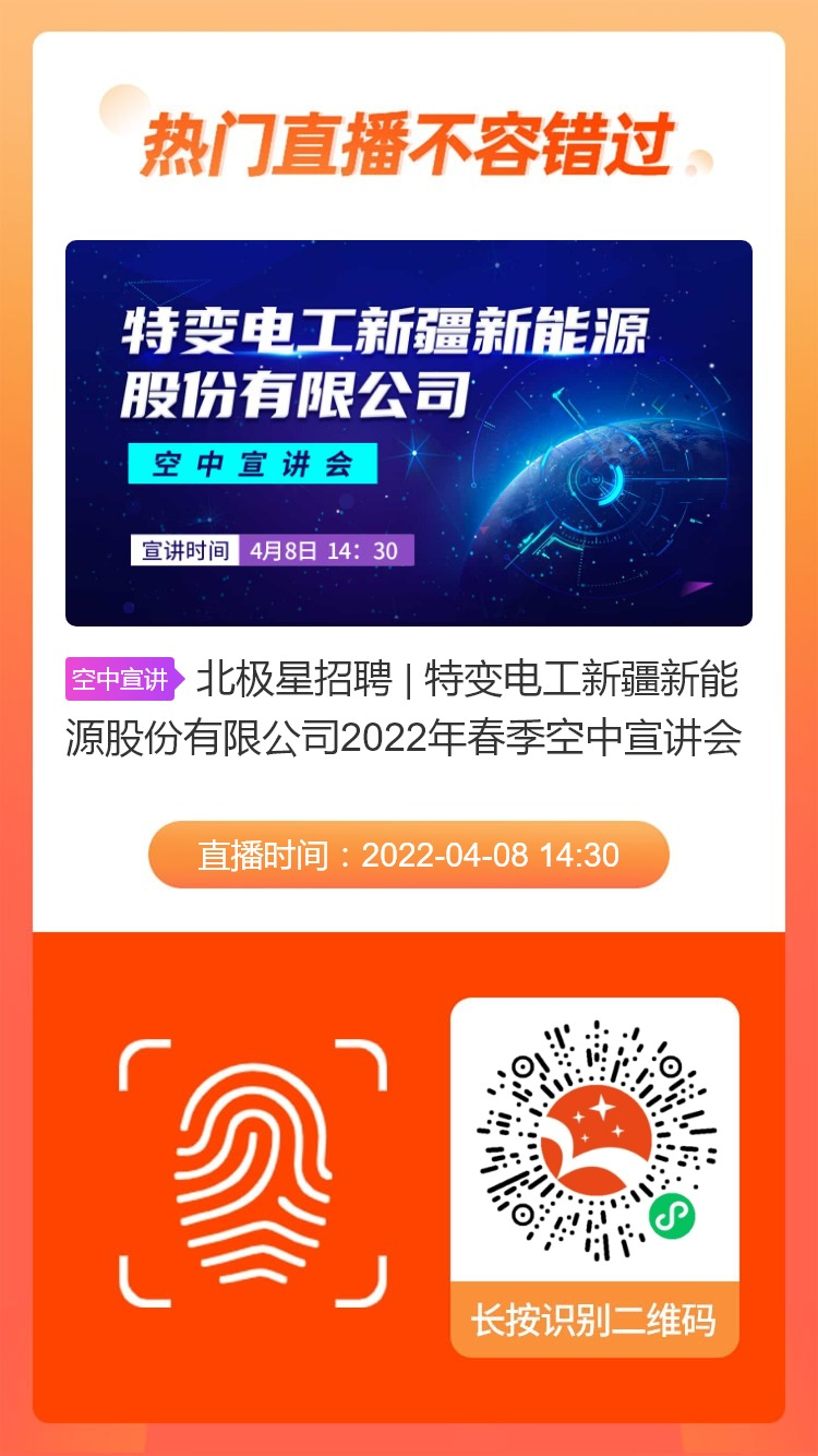 【特变电工新疆新能源股份有限公司】2022年春季空中宣讲会,将以直播的形式直播招聘,欢迎广大应届生参加我们的空中宣讲会