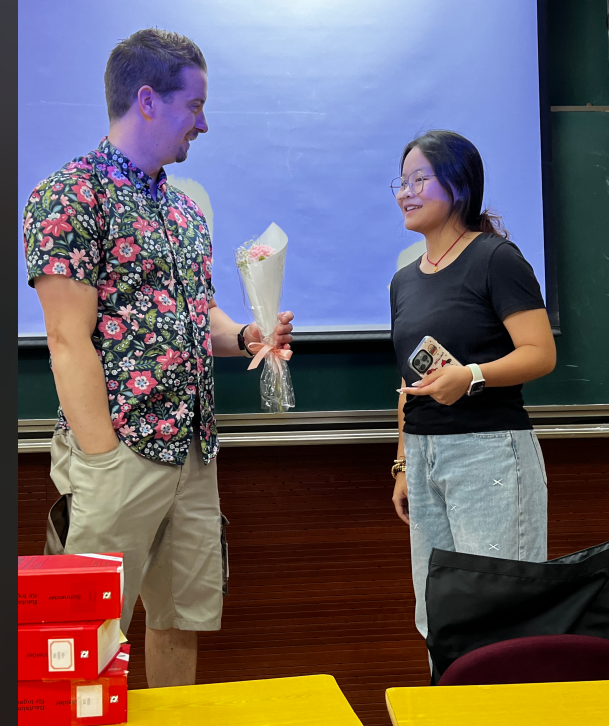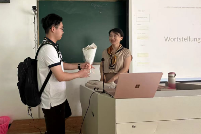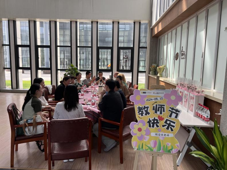 DB彩票 在中德E座大厅举办了慰问教职工座谈会,不同DB彩票 不同国籍的老师们欢聚一堂,分享心得体会,增进了DB彩票 之间的交流;学工部组织学生将教师节花束送给了正在上课的老师,感谢老师们辛勤耕耘,立足三尺讲台,扎根育人热土,培育满园桃李。